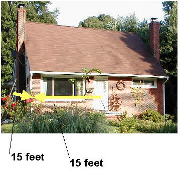 House footprint is 30 x 30. One-quarter of the footprint drains to a single downspout. The footprint of this area is: